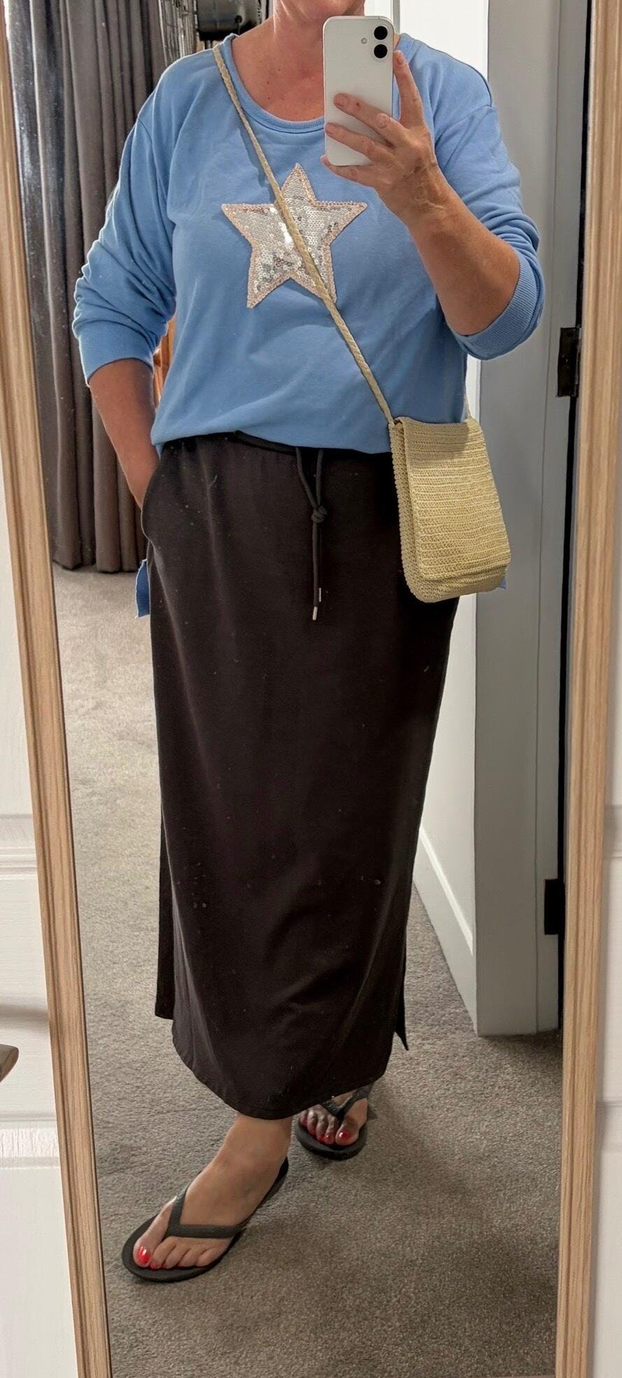 This skirt is an absolute winner. I think it runs a little large but so comfortable and easy to wear
