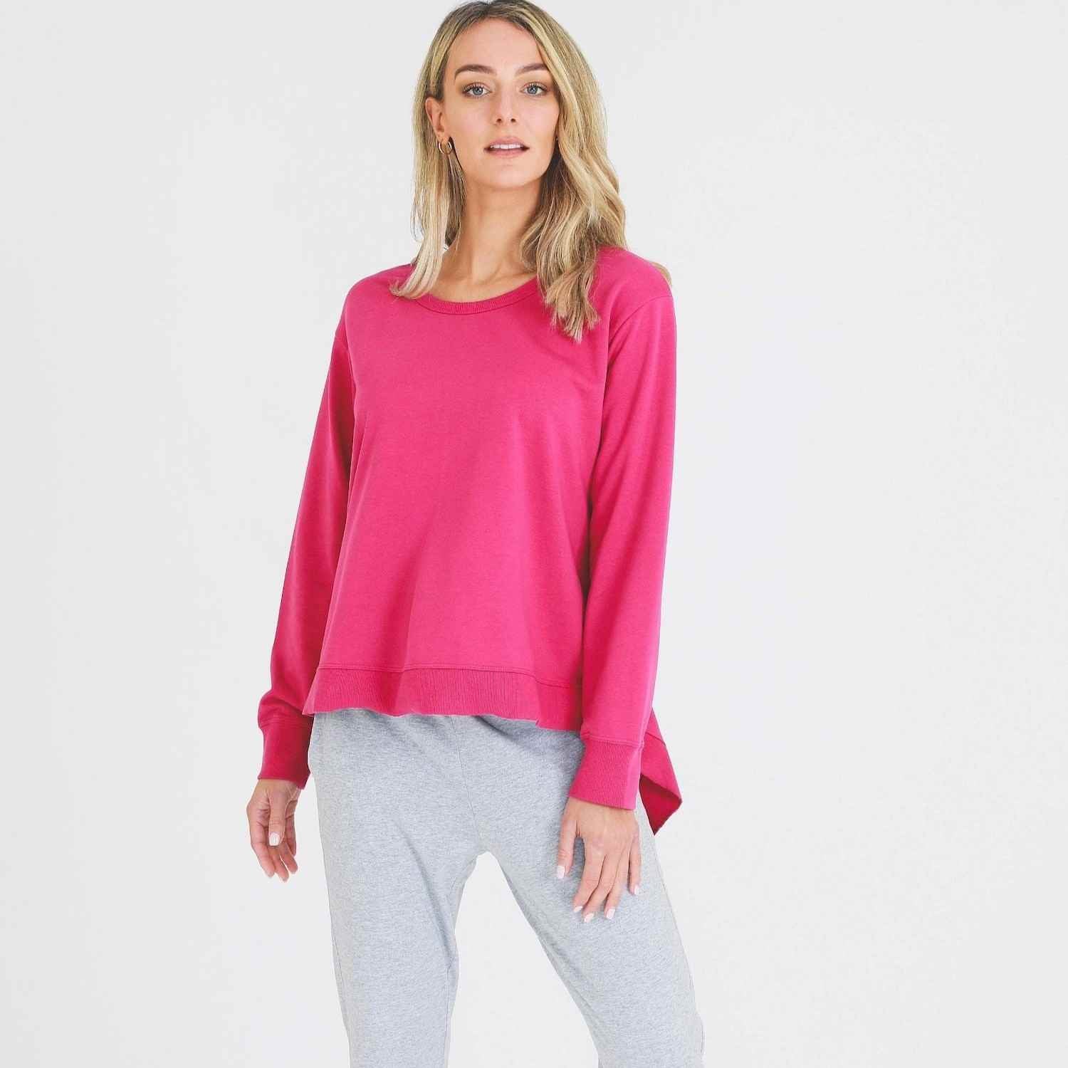 Our Cecilia Sweater is the perfect accompaniment to our bestselling Amber Jogger for a lounging edit. It’s made from a soft cotton French terry and has a washed finish for an already-loved look. With a hi lo asymmetrical hem, ribbed neckline and cuffs its perfect for wearing on off-duty days.