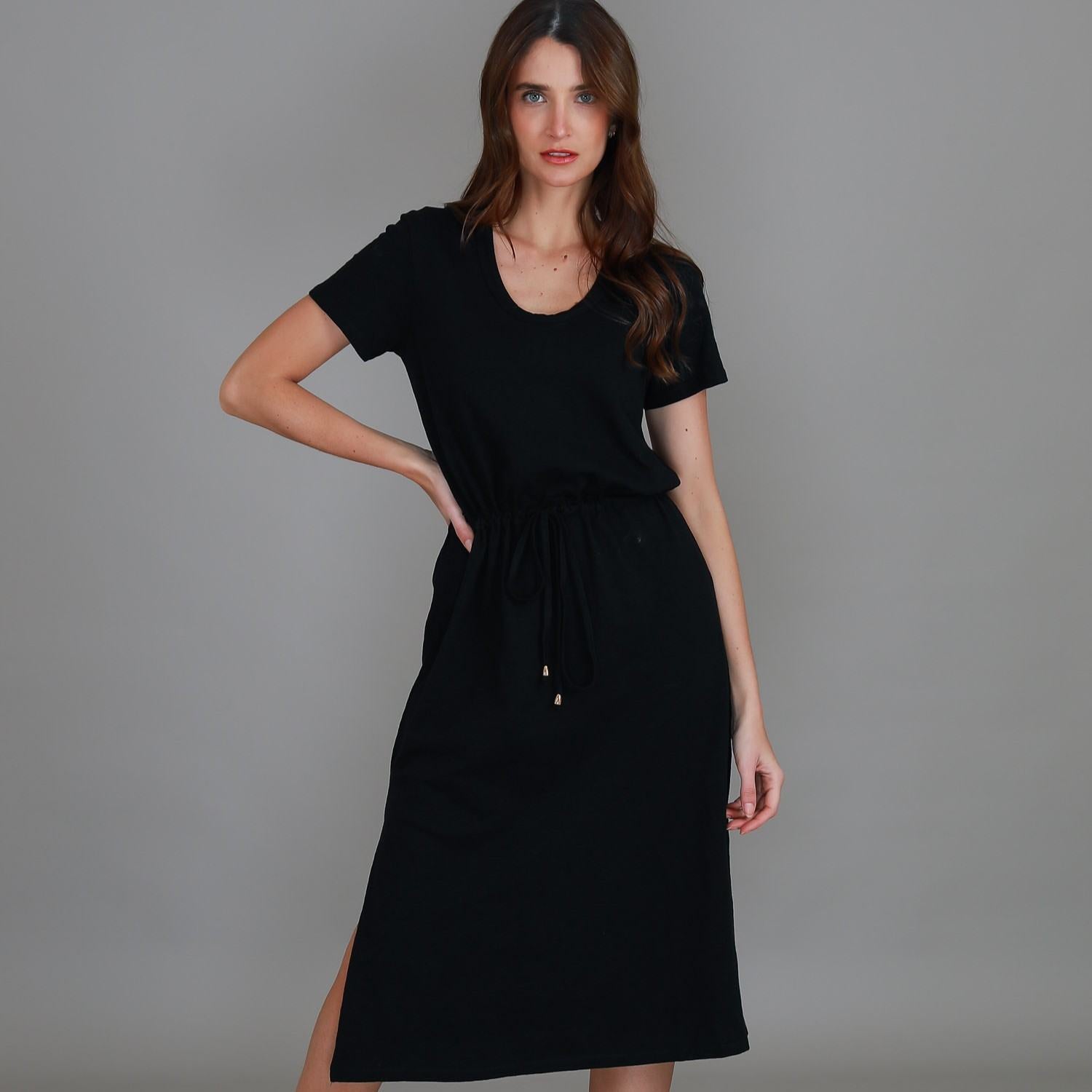 The Esther Midi Dress is the perfect balance of casual comfort and everyday style. Made from soft cotton jersey, this khaki green dress features a flattering scoop neckline, short sleeves, and an adjustable drawstring waist for a versatile fit. The midi length and side split add ease of movement, making it an effortless choice for both relaxed weekends and on-the-go days.