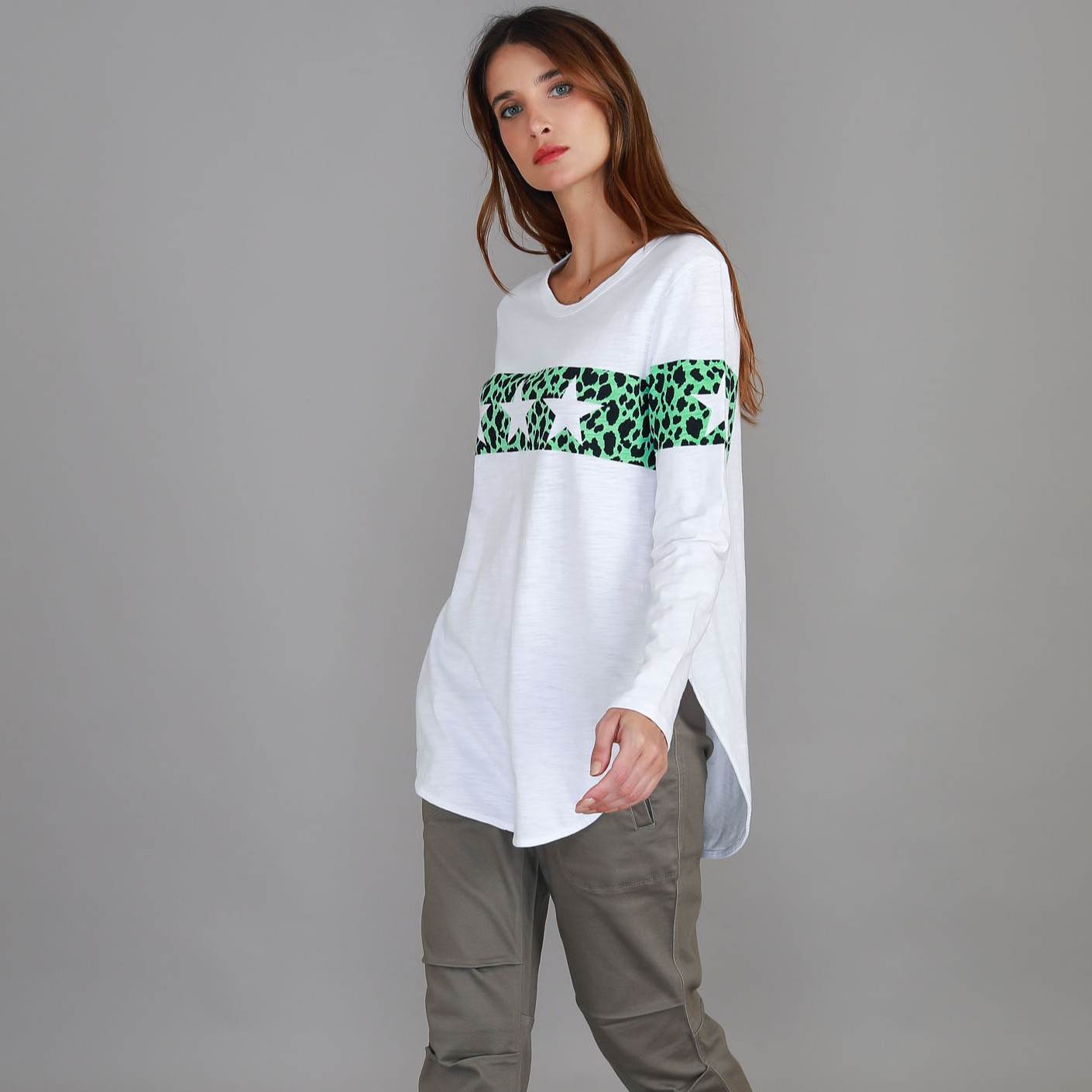 Holland Leopard Star Long Sleeve T ShirtWhite / XS