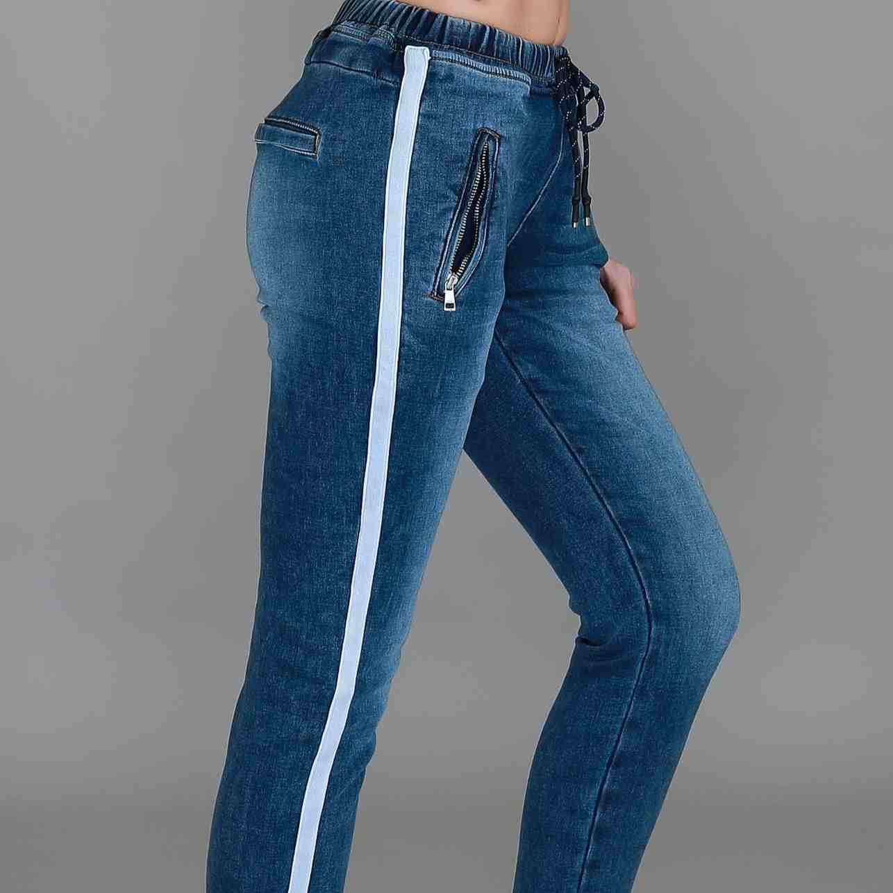 Meet the Molly Jean Jogger – where the comfort of loungewear meets the structure of denim. Available in classic black and timeless denim blue, this slim-fit jogger is crafted from premium stretch French Terry, giving you the soft feel of track pants with the look of stylish black jeans for women. Featuring a drawstring waistband, front zip pockets, and a sporty contrast side stripe, it’s a wardrobe essential for off-duty days or casual outings.
