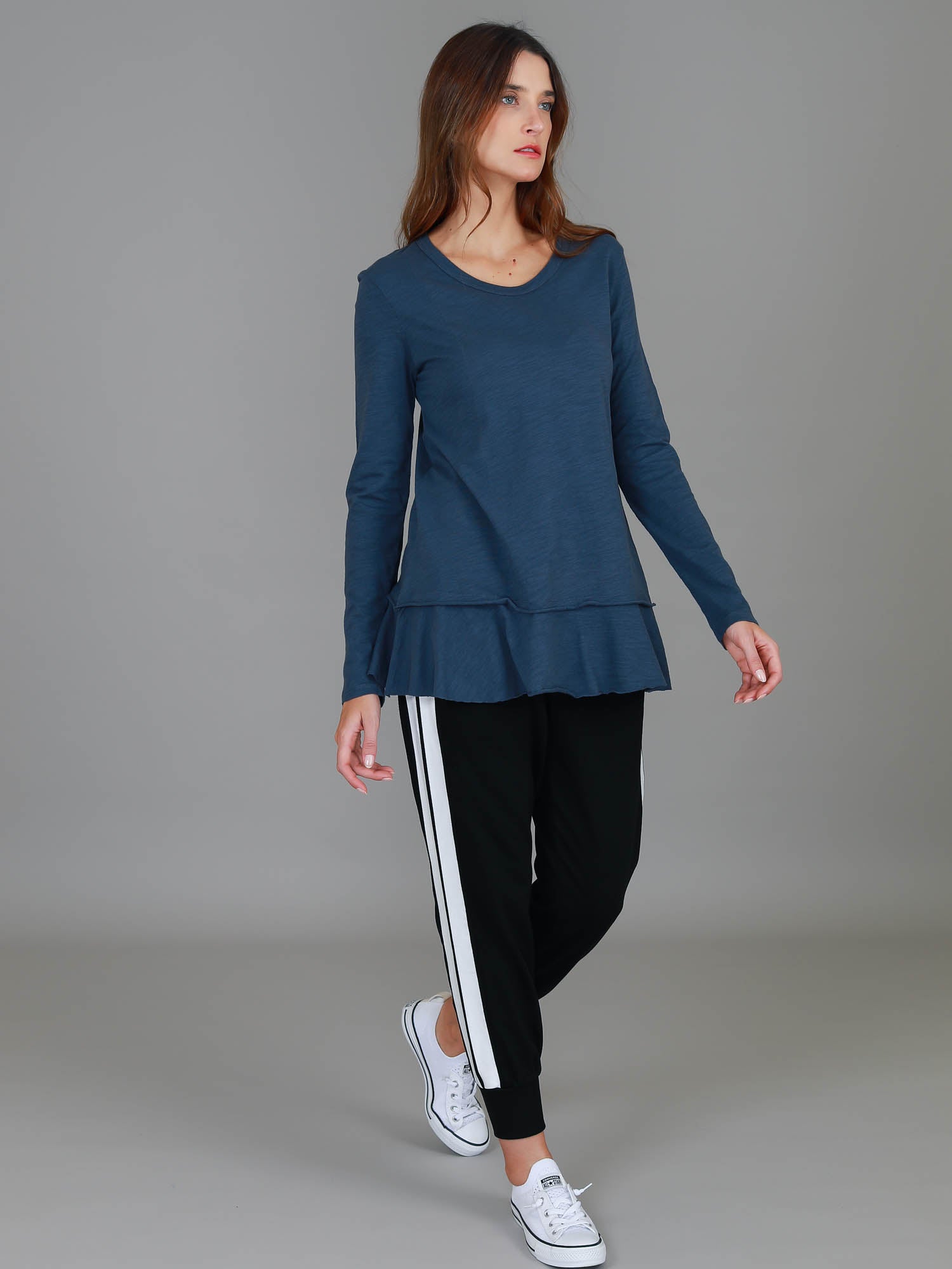 Orchid Ruffle Hem T ShirtIndigo / XS