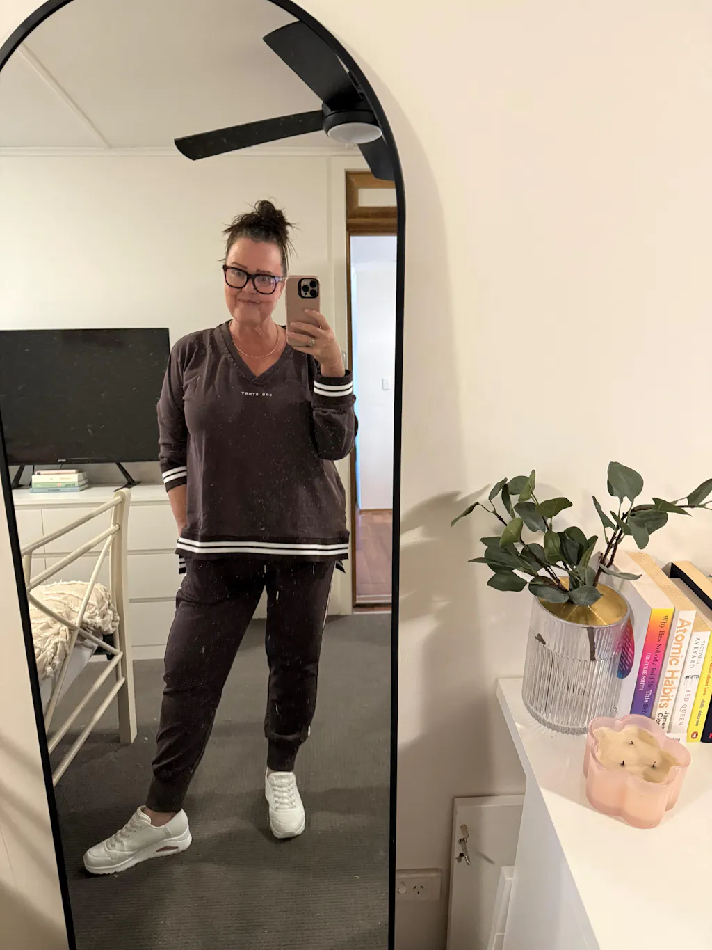 The Pammy Stripe Joggers in Truffle are the perfect match to the Pammy V-Neck Sweatshirt, creating a stylish and coordinated set. Made from soft, breathable French Terry cotton, these joggers feature a tapered leg with ribbed cuffs, a comfortable elastic waistband with drawcord, and bold white double side stripes for a sporty, elevated edge. Side pockets add practicality, making them ideal for everyday wear.