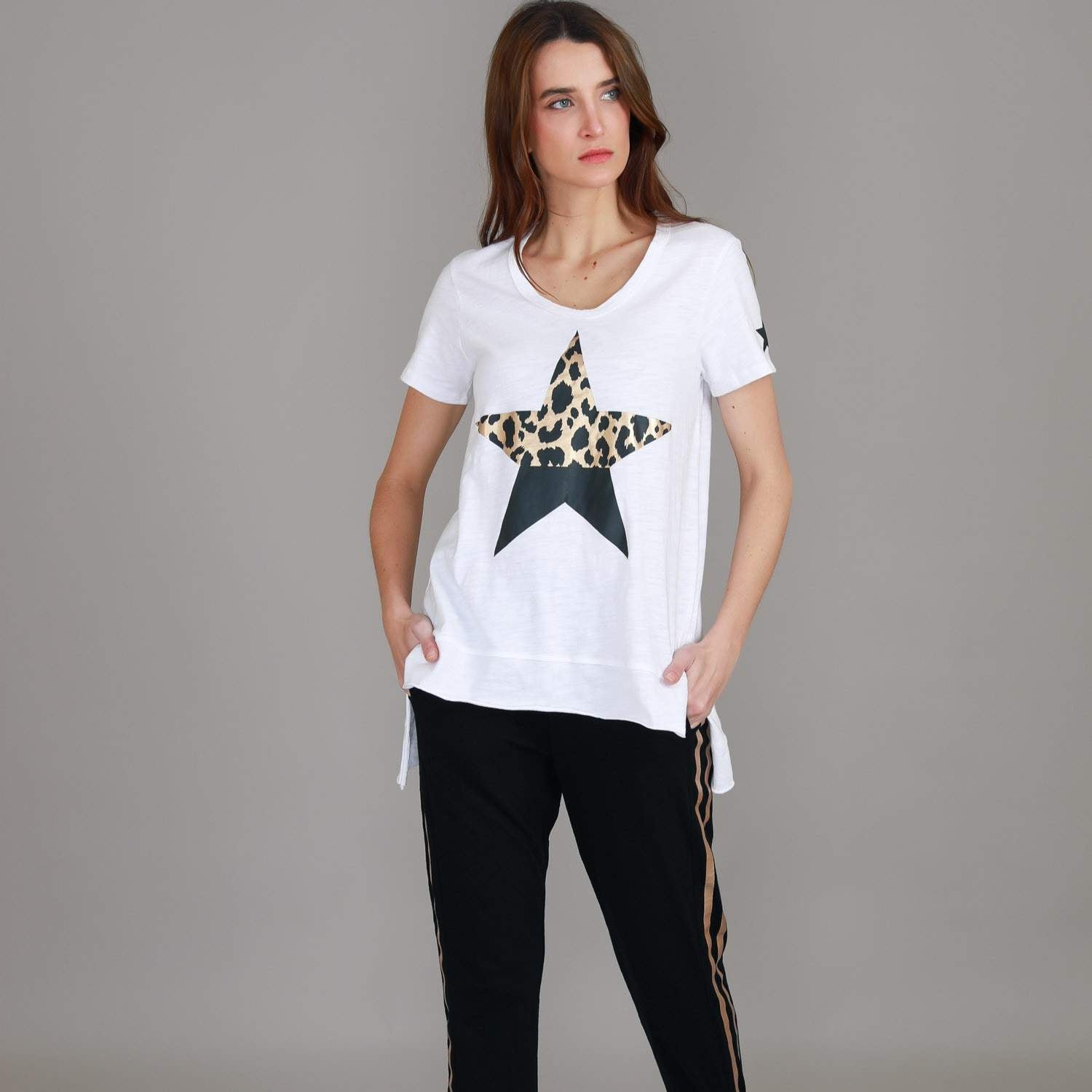 Rosemary Splice Star Leopard Print T ShirtGrey Marle / XS