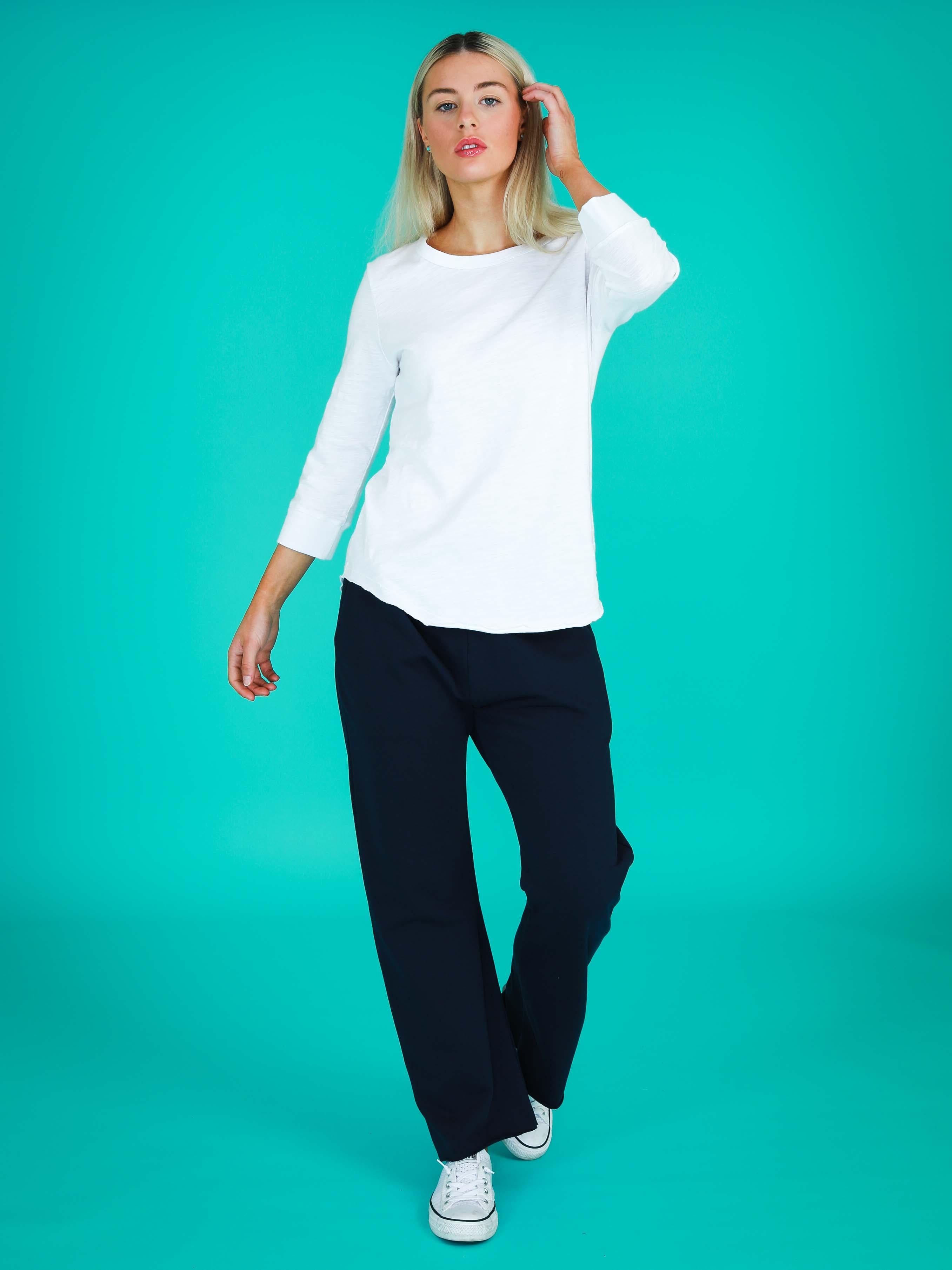 Refresh your wardrobe with the Shannon 3/4 Sleeve T-Shirt, a neutral top designed for effortless layering and year-round wear. Crafted from breathable cotton slub, it features a classic crew neckline, curved hemline, and ribbed cuffs on the mid-length sleeves for a flattering, comfortable fit.