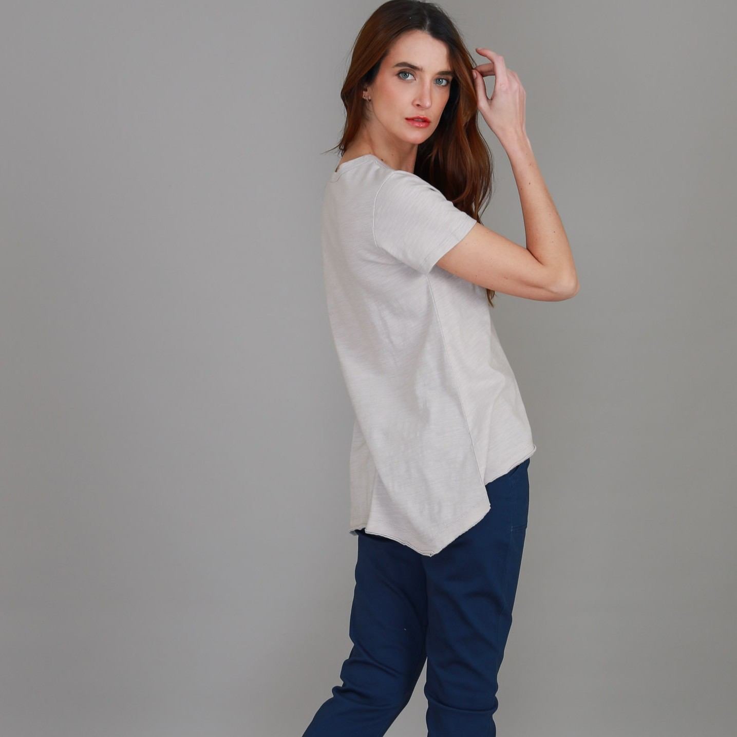 The Thornton V Neck T Shirt is the ultimate wardrobe staple — a versatile black t shirt designed for everyday wear. Made from soft cotton, it features a flattering v neckline, short sleeves, and a gently curved high-low hem for a modern finish. Comfortable and easy to style, it’s the kind of black top you’ll wear on repeat.